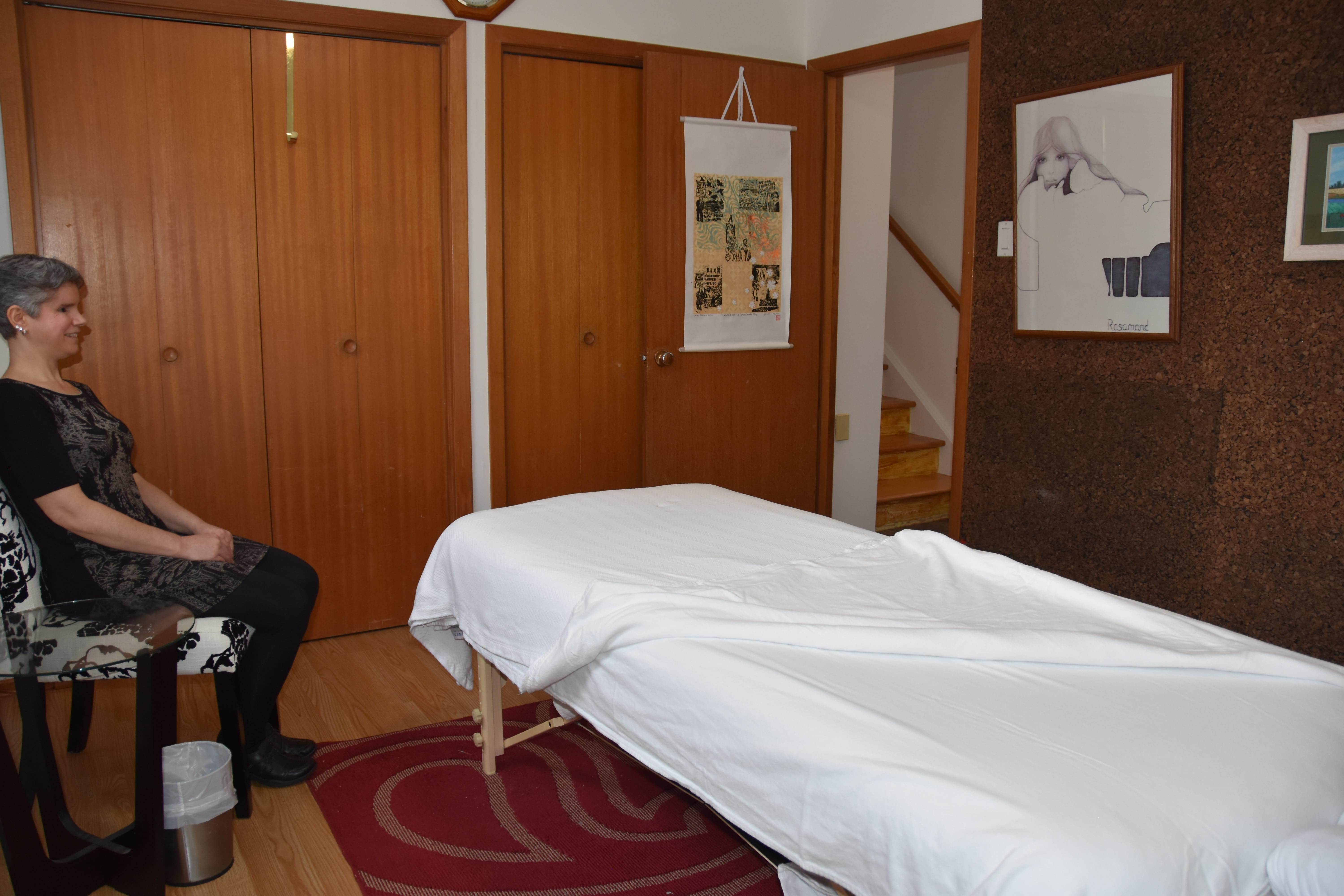 My home-based massage therapy clinic is in a quiet south residential neighbourhood. In the warmer months you can enjoy the fresh air and birds sounds that come through the treatment room window. In the winter, you will be kept toasty warm with the table warmer and flannel sheets. I use organic MCT oil for the massage, and my house is primarily scent free. Linens are washed in scent-free products.